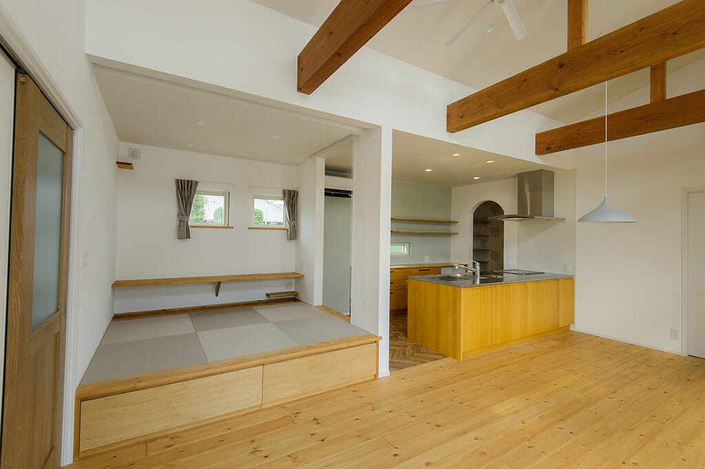 リビングにちょっと大きめにかつ畳を敷いて‼