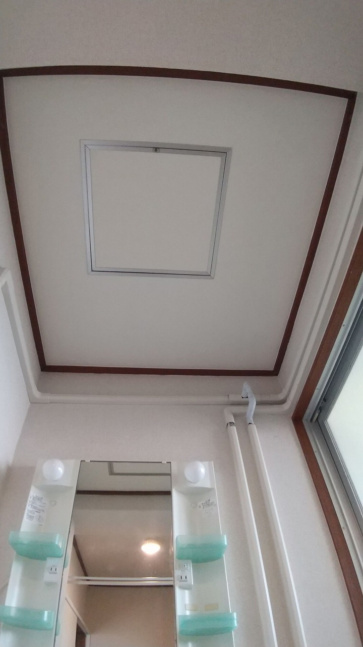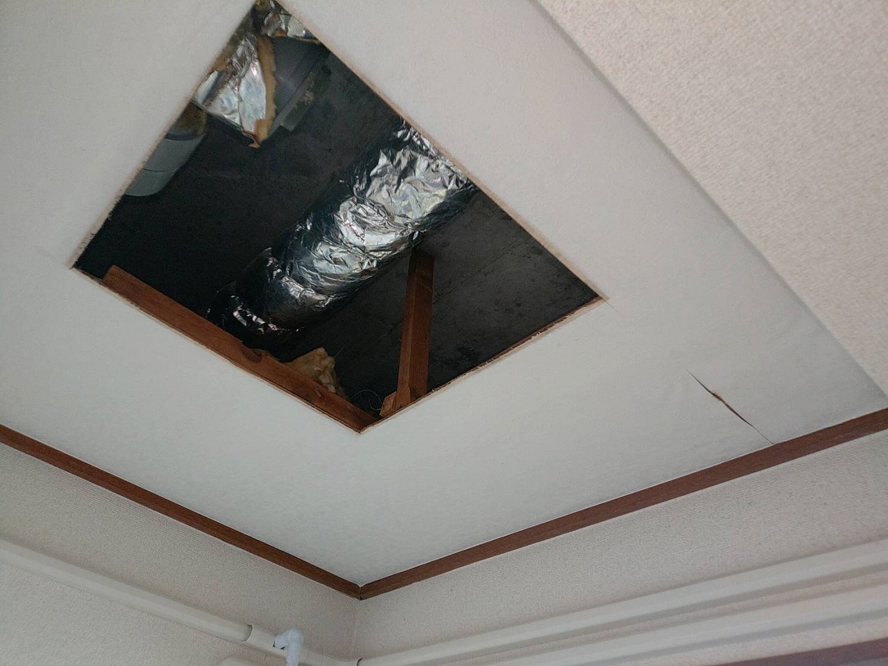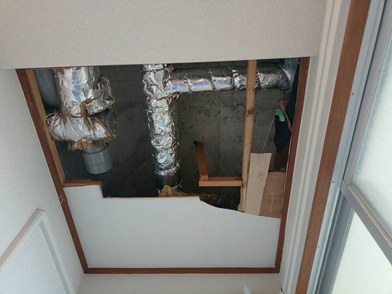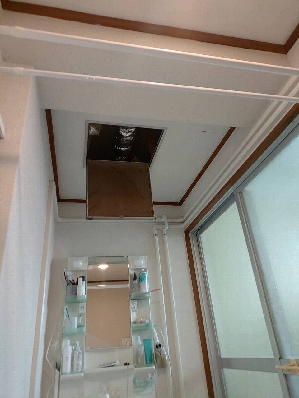 下の階の状況です。点検口に濡れた跡がありますね💦