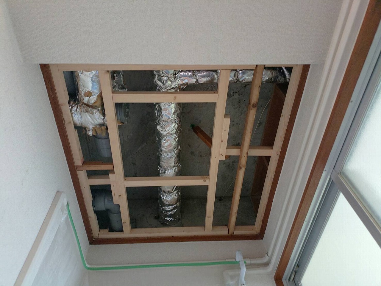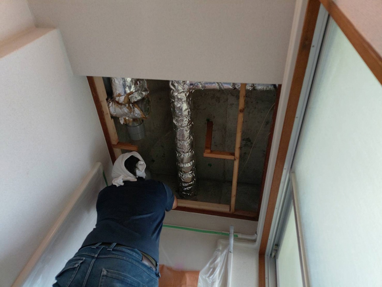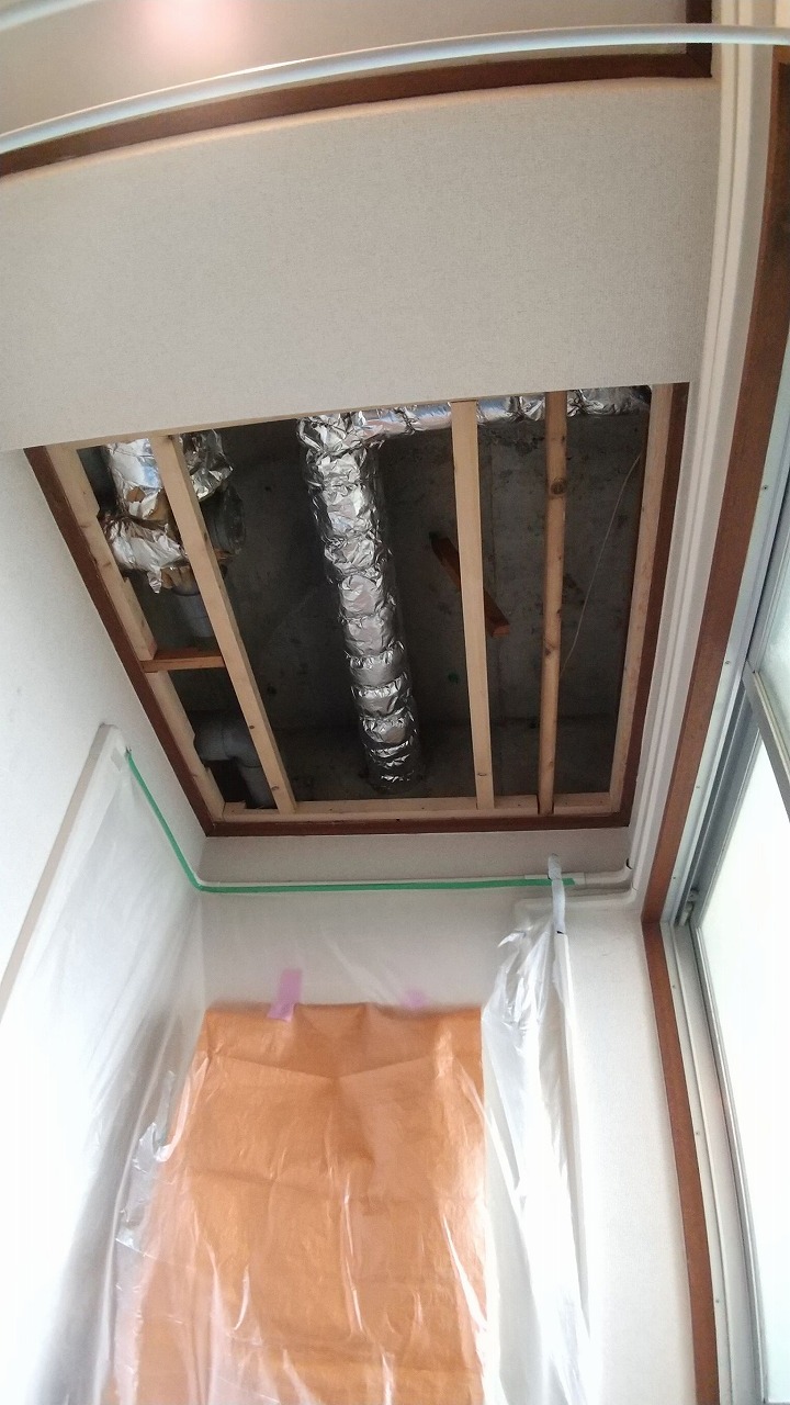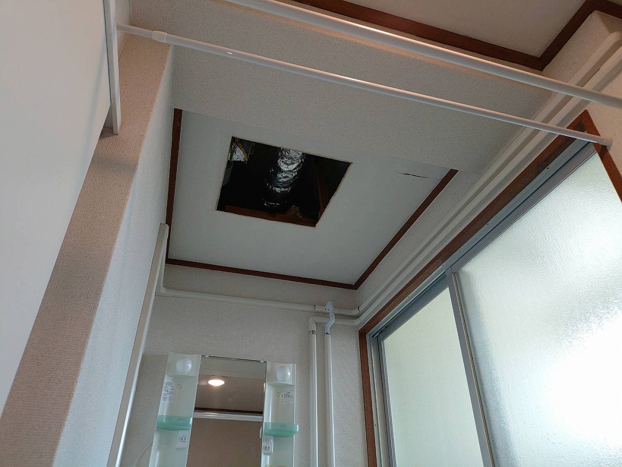 下の階の状況です。点検口に濡れた跡がありますね💦