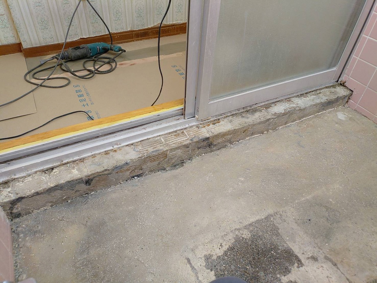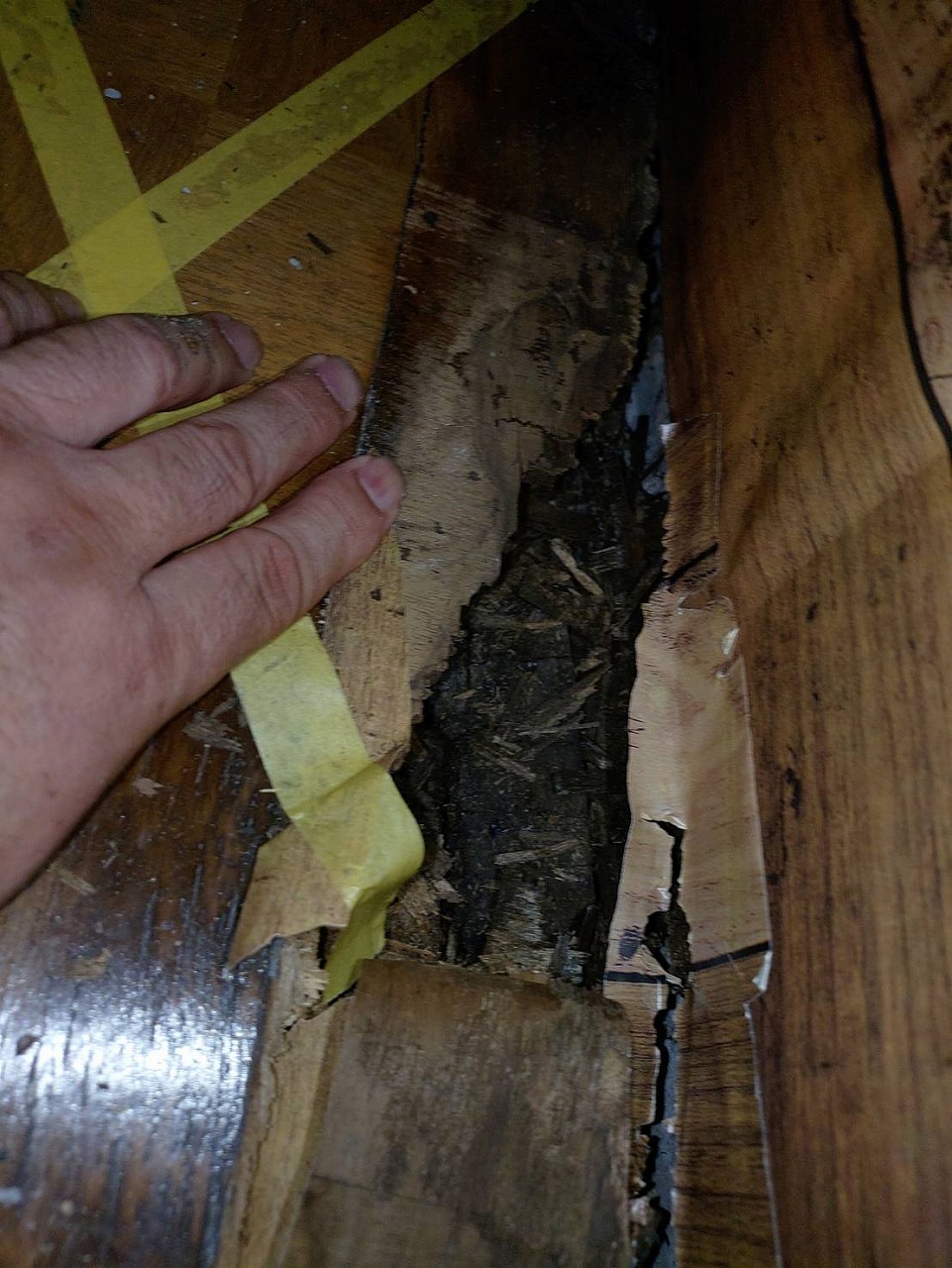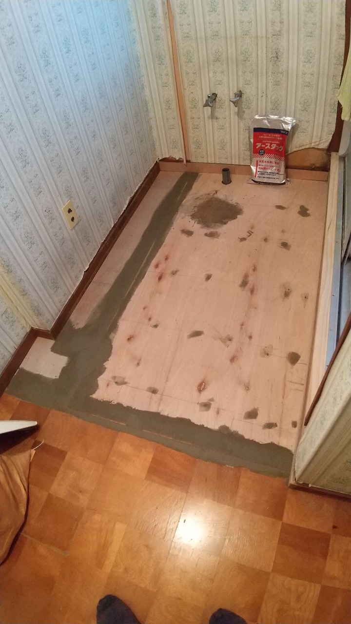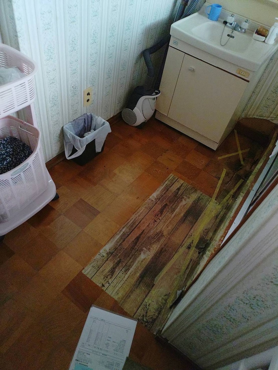 ここの床がかなり腐ってしまっているので、解体して下地を組んで合板ベニアを貼っていきます。