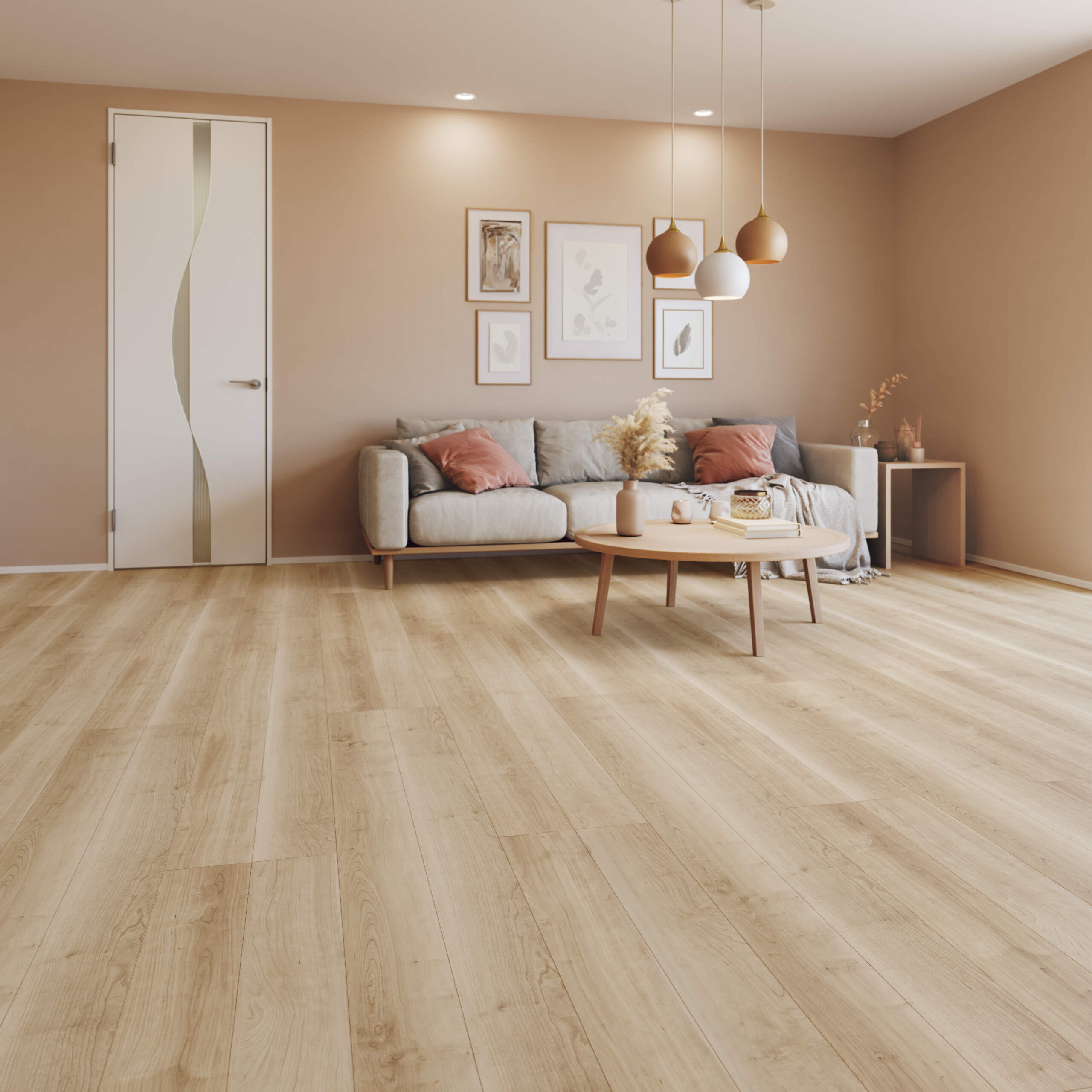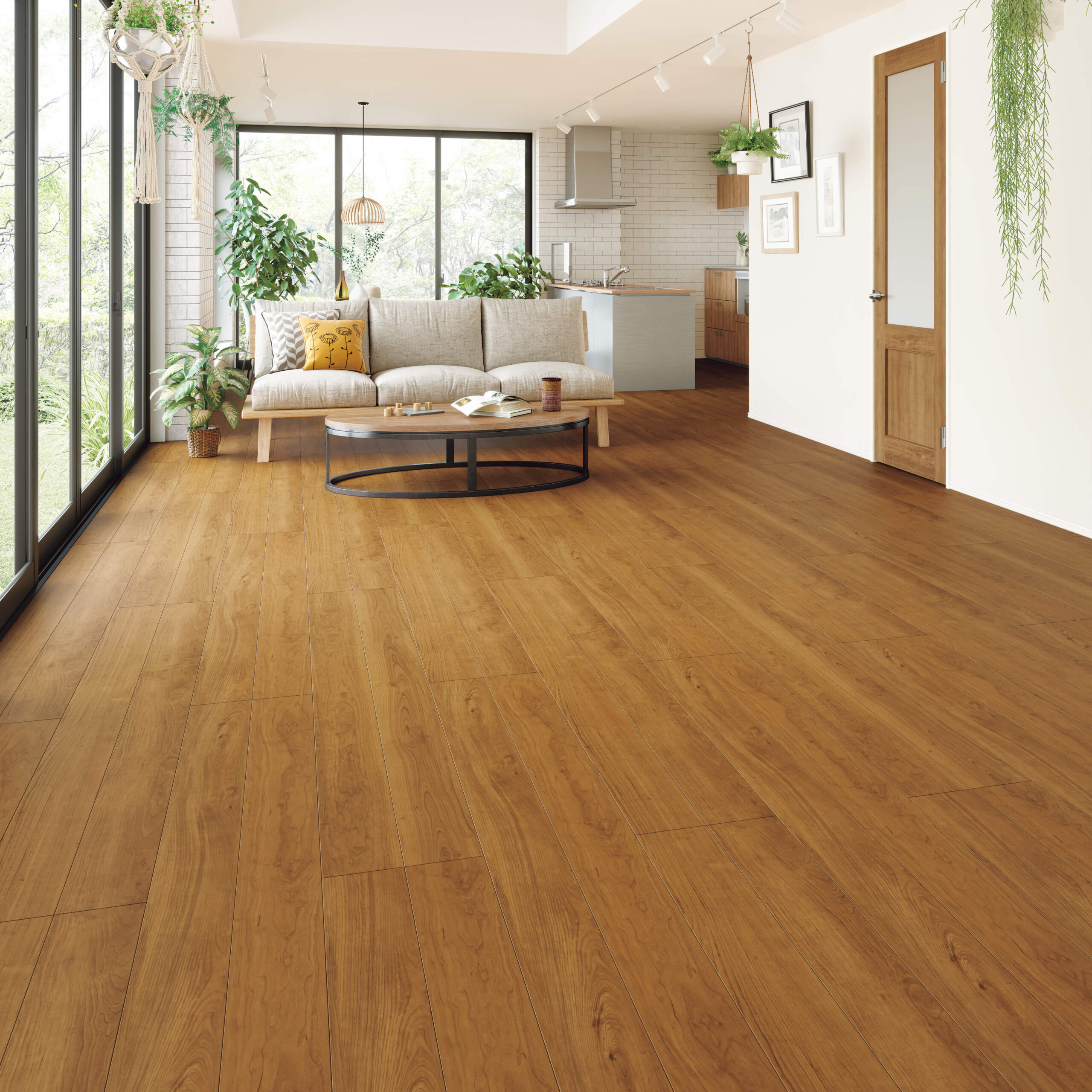 へこみ傷、擦り傷、摩耗に強く、汚れが落ちやすく、ワックスフリー、抗菌などの性能も備えています。