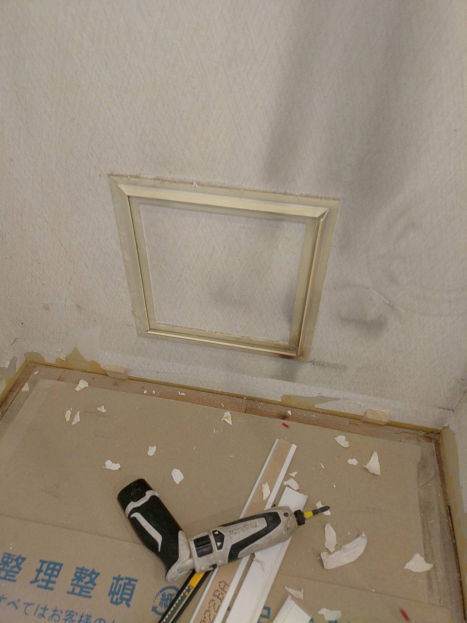 点検口の交換も‼冷蔵庫で隠れてしまうところですが、せっかくのなので真っ白な枠に交換です(#^.^#)