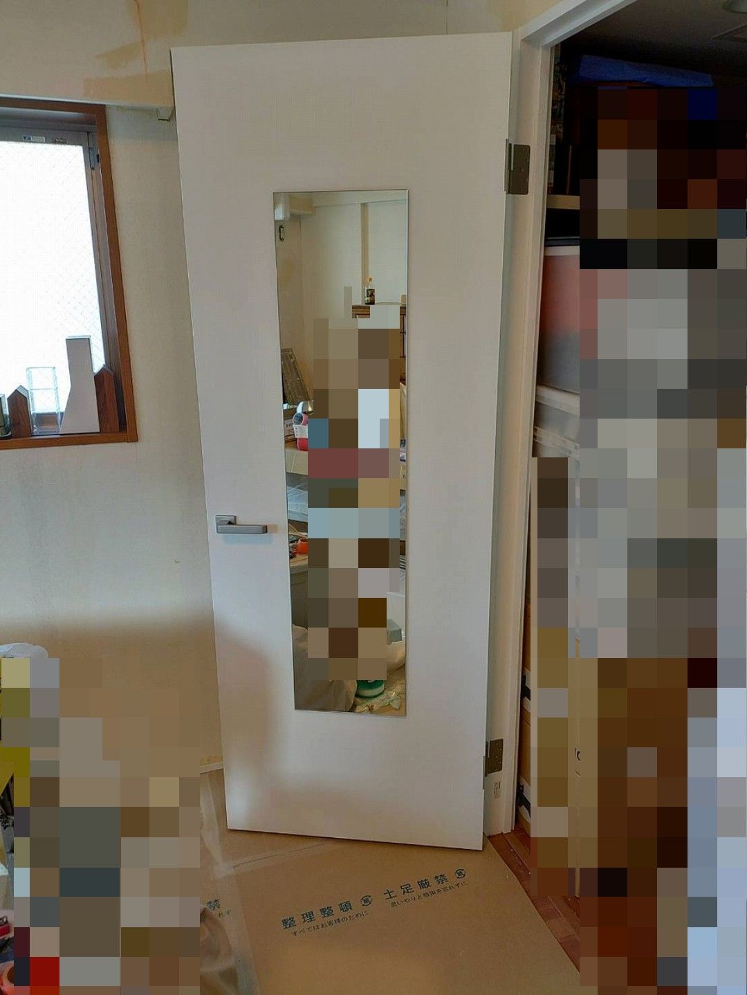 収納の既存のドアには、姿見の鏡を取り付けます‼