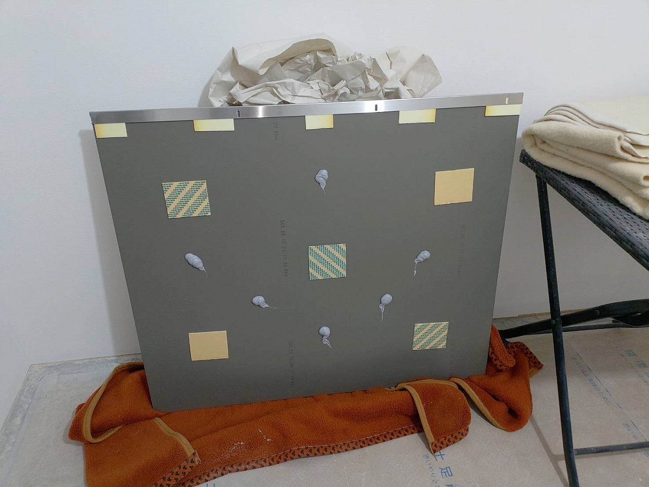 大きすぎて一度貼ったら動かせないので、1枚1枚丁寧に慎重に貼っていきます。