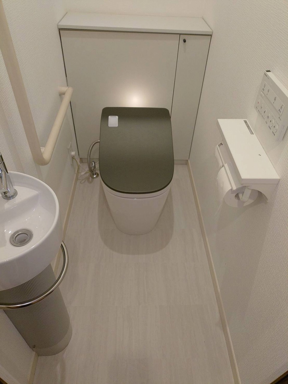 お手洗いは、アラウーノのふたをフレンチオリーブをお選びいただきました。