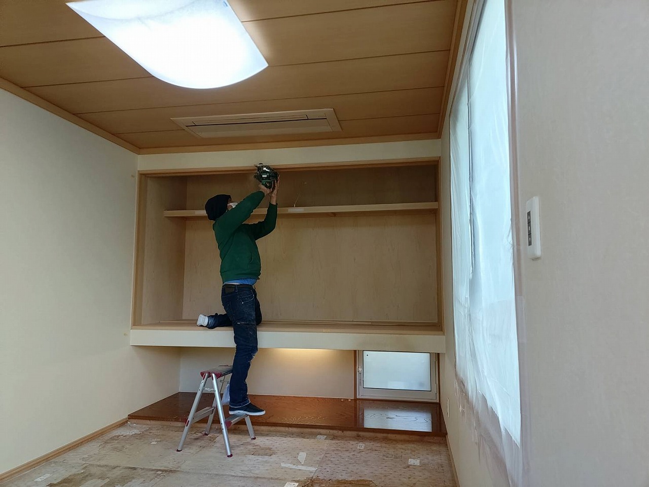 クロスも貼って、エアコンも再設置しました‼