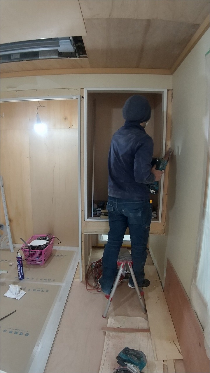 最後に収納に可動棚と枕棚+ハンガーパイプを設置して工事完了‼