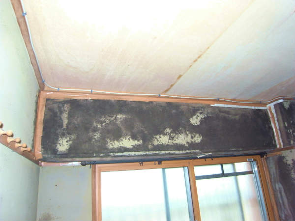 外部の寒さが直に伝わってしまい、壁面に結露が生じ、そこにカビが発生してしまったようです。