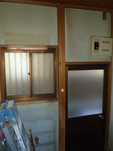 今回、工事中にリクエストがあり、この洗面室に外に出るための勝手口があります。