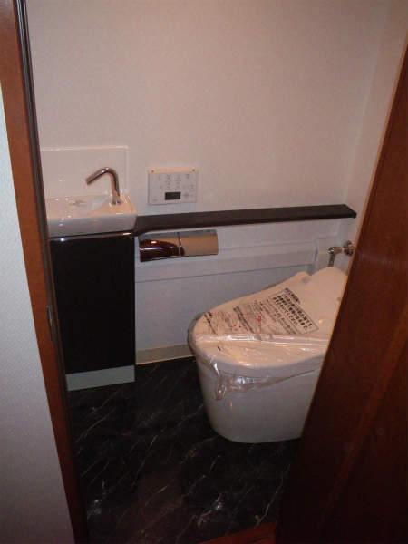 トイレを節水トイレに交換して、内装もきれいにしたいとのご依頼です。