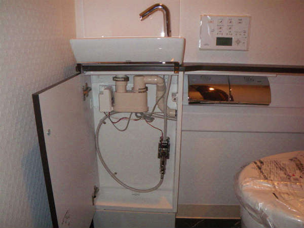 こちらの商品は、給水排水が統合されているので、特別に給水排水管の工事がいりません。