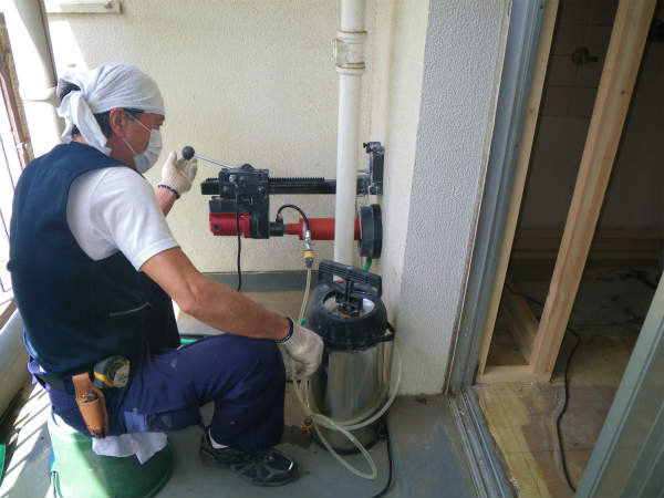 そのためにまず、壁に配管用の穴を開けなければなりません。