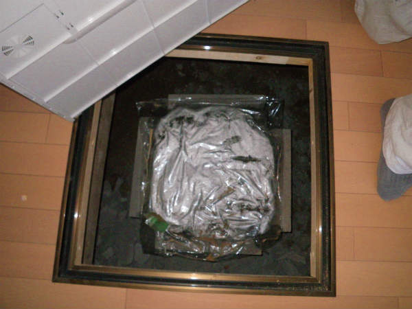 そして、給湯器が浴槽の裏側に付いている「オールインワンタイプ」でした。