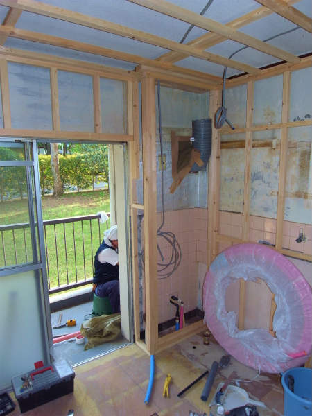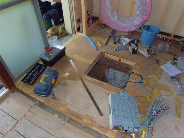 そこから、ユニットバス・洗面台・キッチンへとお湯のラインを配管しました。