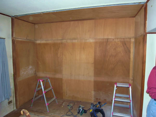 実は、正面のカーテンの掛かっている壁が、結露で黒カビがいっぱいありました。