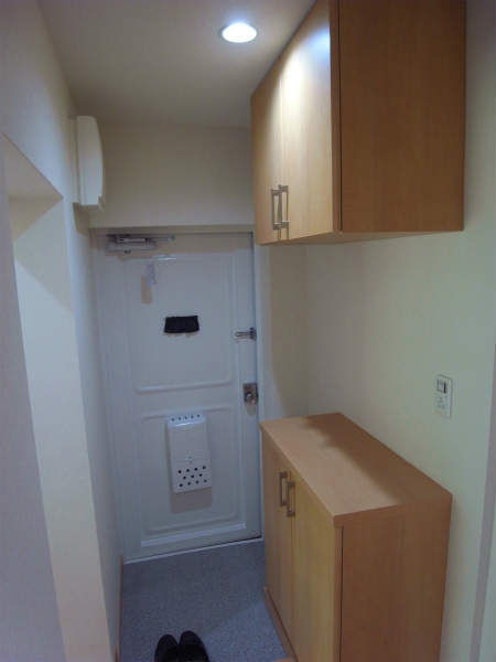 ドアもきれいに塗装し、分電盤も新しくして、照明器具もベース型LEDダウンライトにしました。