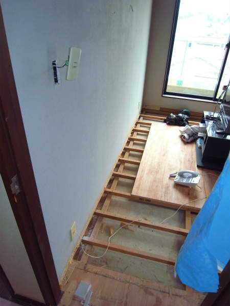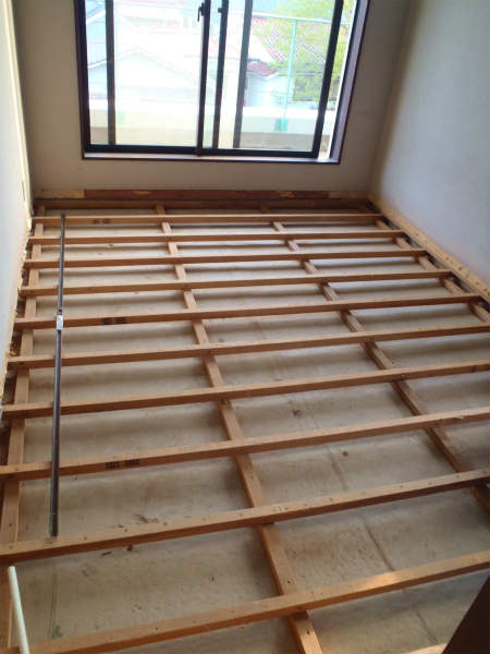 まずは、既存のフローリングを剥がし、根太だけの状態にします。