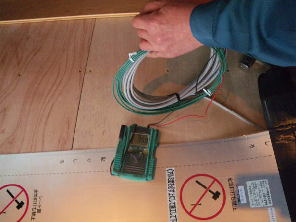 今回ご提案したのは、電気式の床暖ですので、通電チェックと抵抗値の測定が必須になります。