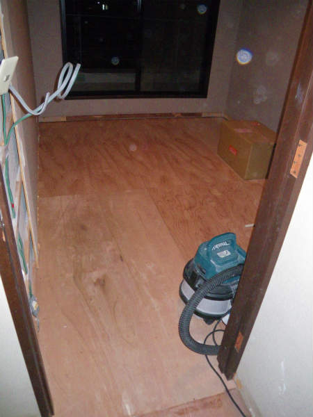 断熱材が敷き詰め終わりましたら、ベニアの捨て張りです。