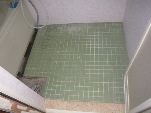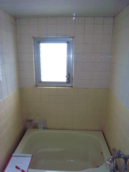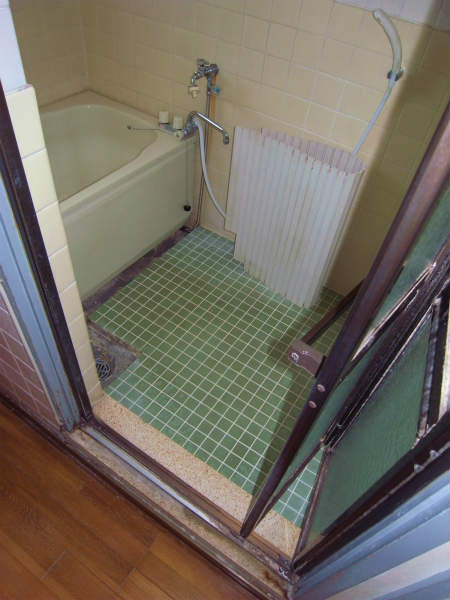 古い公団タイプの浴室は、タイル張りの浴室が多く見られます。