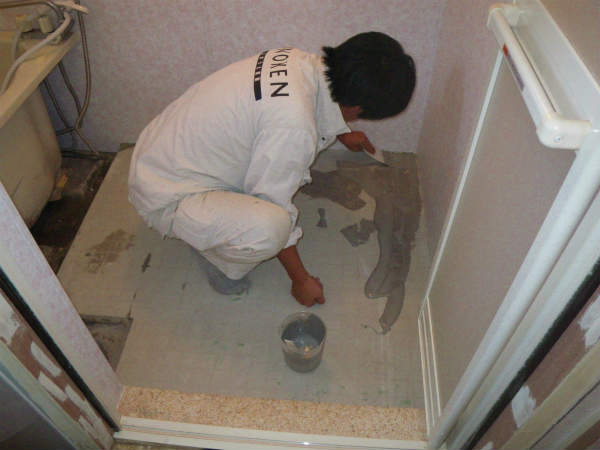 下地処理をし、専用の接着剤を塗布し、シートを貼ります。