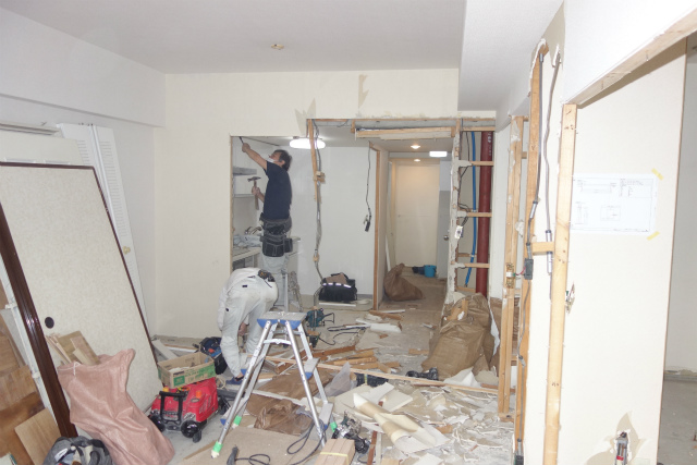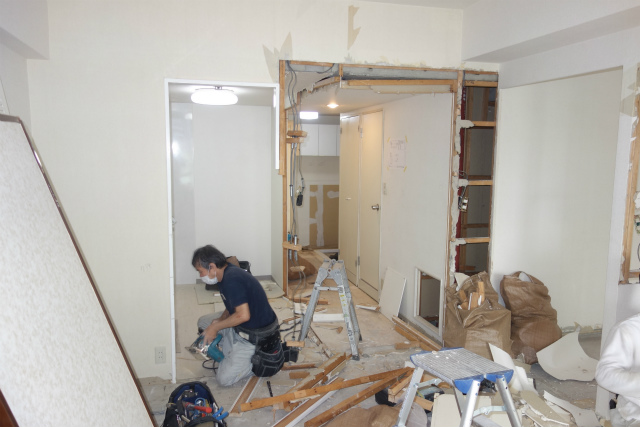 さあ!まずは既存のキッチンの間仕切壁を解体します・