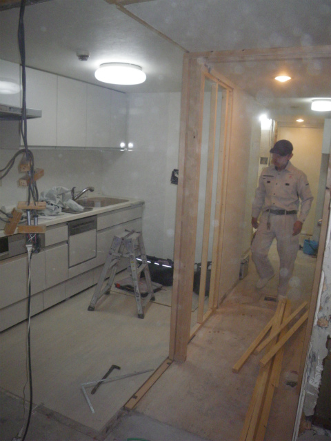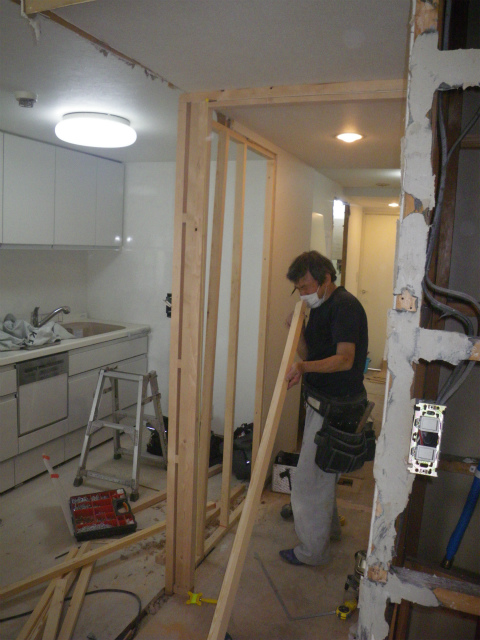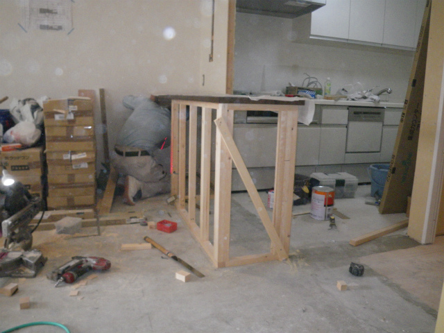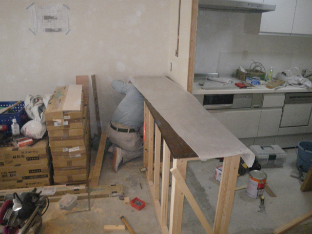 ですので、既存のキッチンの間仕切壁を造作する必要がありました。
