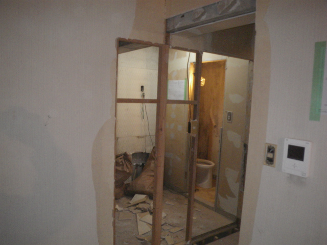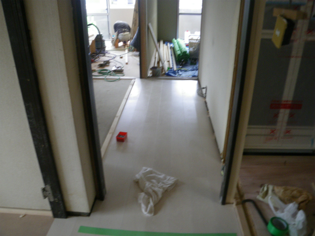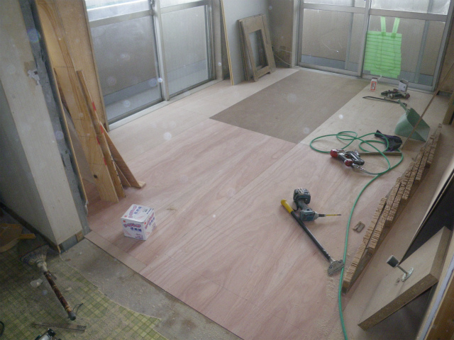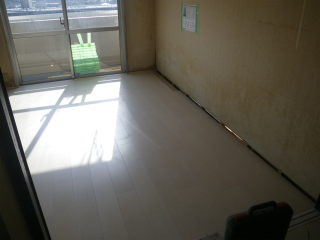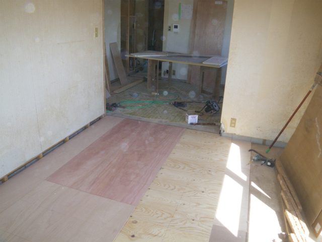 フルリフォーム 中古マンションのフルリフォーム② 横浜 緑区 マンション 2016/07/23 前回の引き続きです。 さあ、解体です。 バリバリ解体して古いものは取り替えて、使えるものは再利用して…。 これが『リノベーション』です。 お客様のご要望で間取りも特に変えなくてよろしいのと、 和室も和室のままでよろしいとのことです。 下地の悪いところだけ取り替えて壁の下地を造作します。 床の下地もブカブカのところを貼り替えます。 きれいにフローリングが貼れました。 次にクロスの下地処理です。 あとは、クロスを貼って完了です。 今回はここまで。 次回は仕上げになります。楽しみですね‼