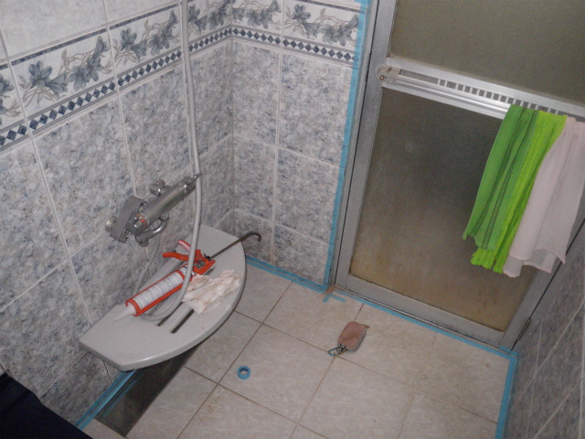 浴室内のタイル壁とタイル床の取り合い部分の防水補修です。