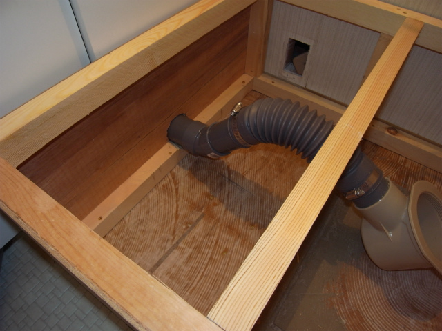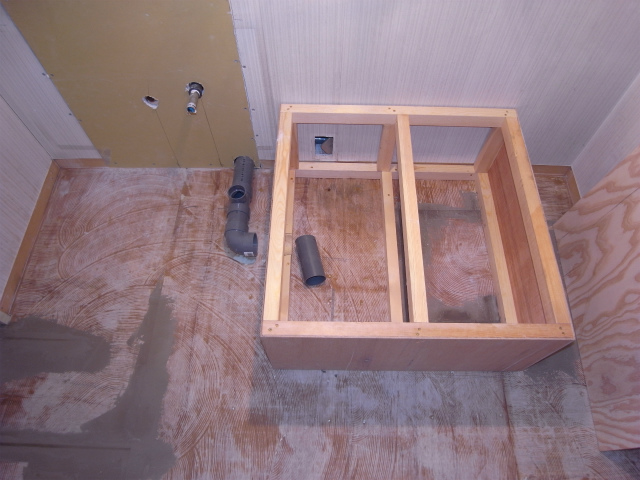 排水管の勾配を確保するために、約20センチほど高くなるように架台を造作しました。