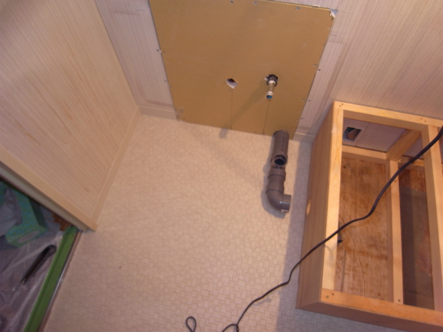 洗面化粧台の横から排水管を入れているのは、今までと同じですが、