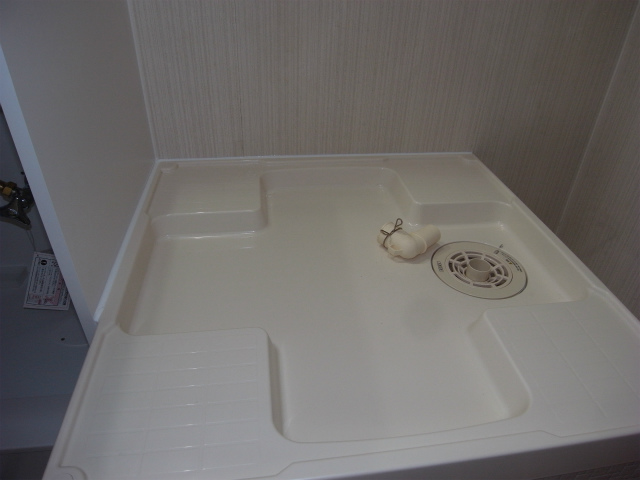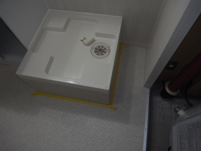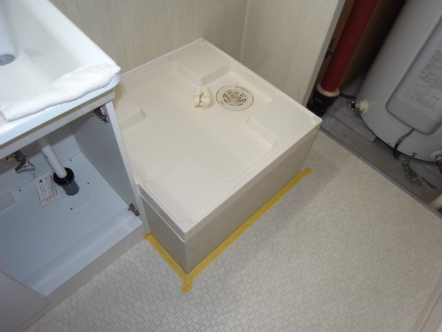洗濯パンの排水トラップを接続して、下地工事は完了です。
