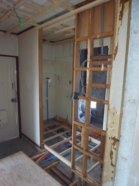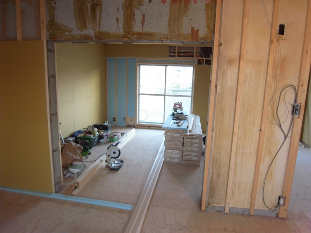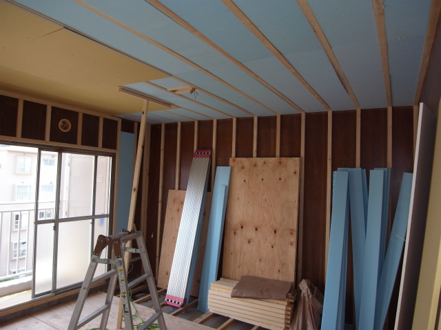 公団団地は、コンクリートの躯体壁が多いので、何もしないでこのまま壁や天井を作ってしまうと