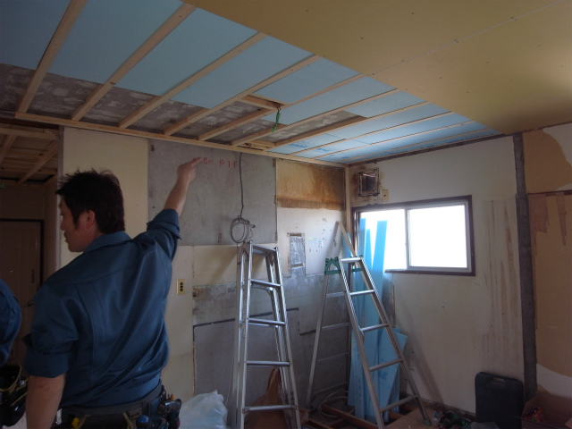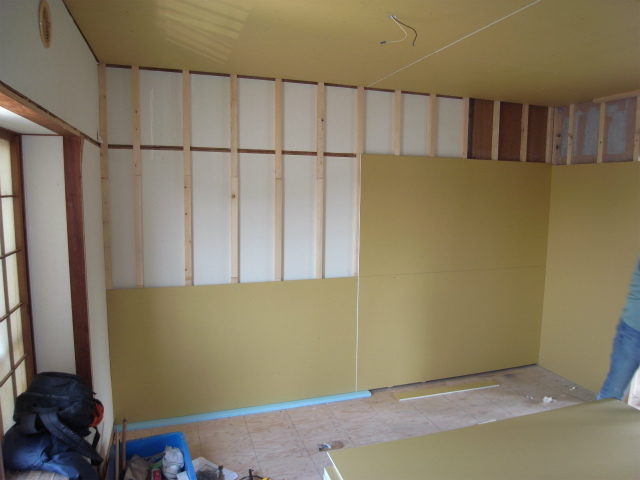 塗装がしてあったリでしたが、壁という壁はすべて耐火ボードを貼りました。