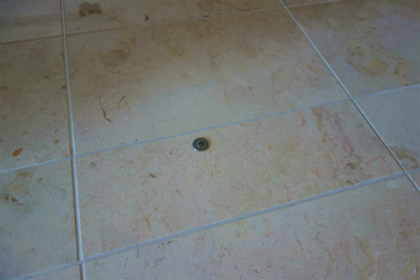 施工中2 施工2-2 グラインダーを目地に沿って入れて、交換する部分の大理石を独立させます。