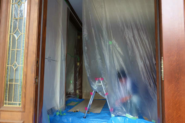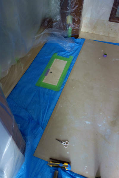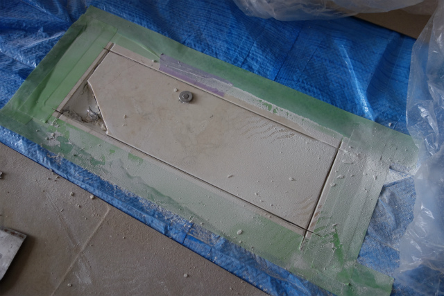 十分な養生をして、削り取る部分をマスキングしてから、いよいよ作業に入ります。