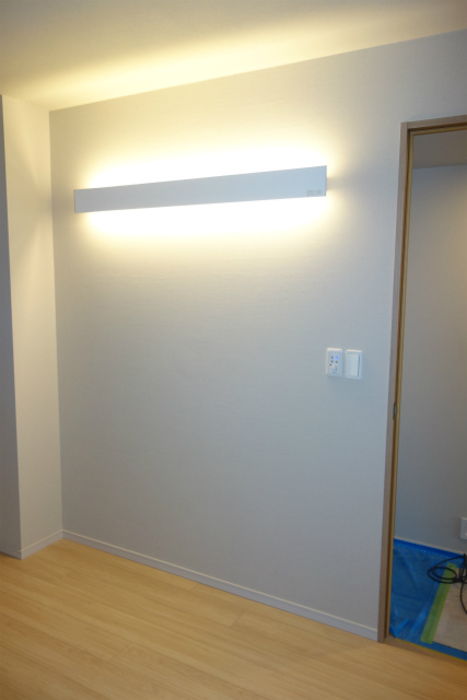 更に追加工事を頂き、寝室に間接照明を壁面に埋め込んで取付いたしました。