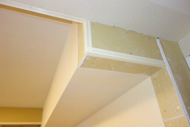 クロスを貼った時に角が「ピンッ!」ときれいに決まるためにする下地作業です。