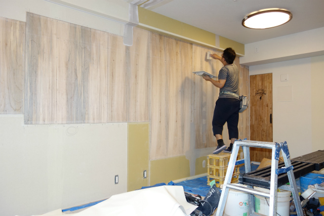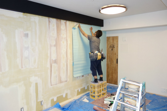 さあ!仕上げのクロスを貼っていきますよ!!