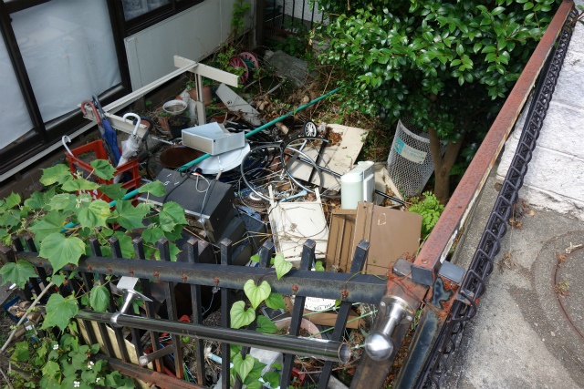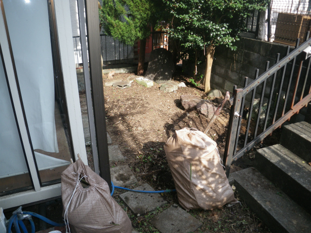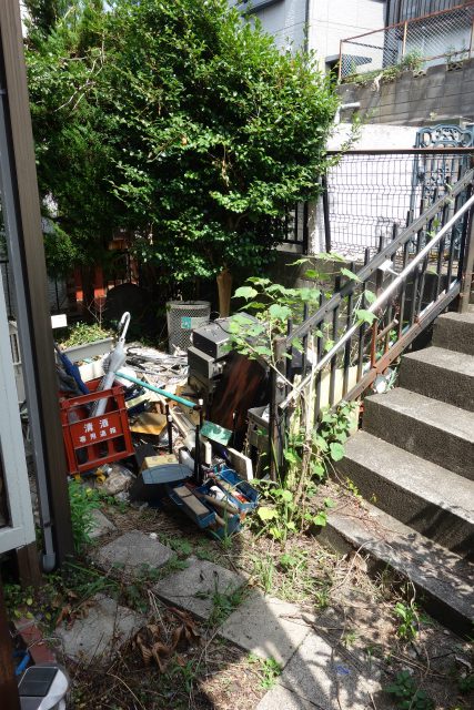 お庭が樹木で生い茂っており、尚且つ、お庭にも残置物がたくさんありました。