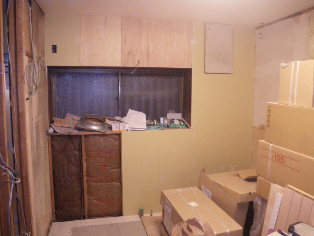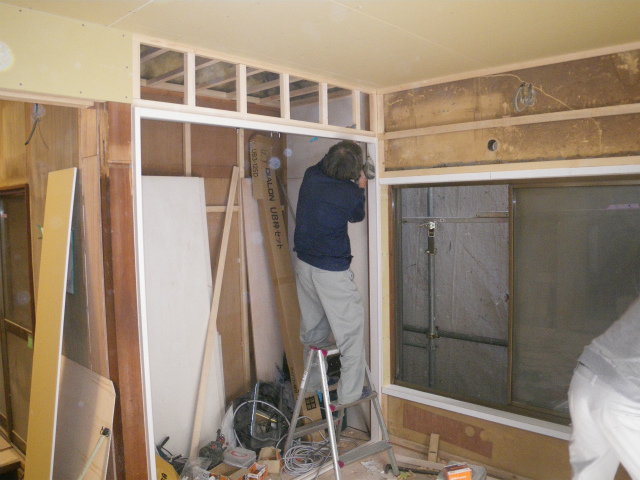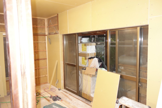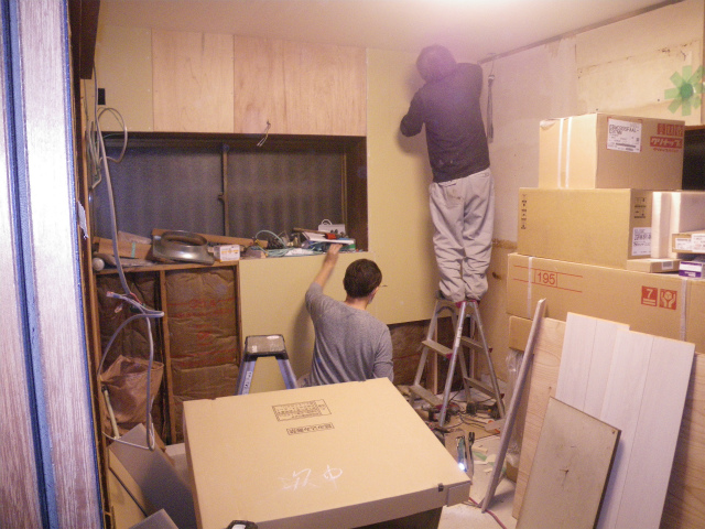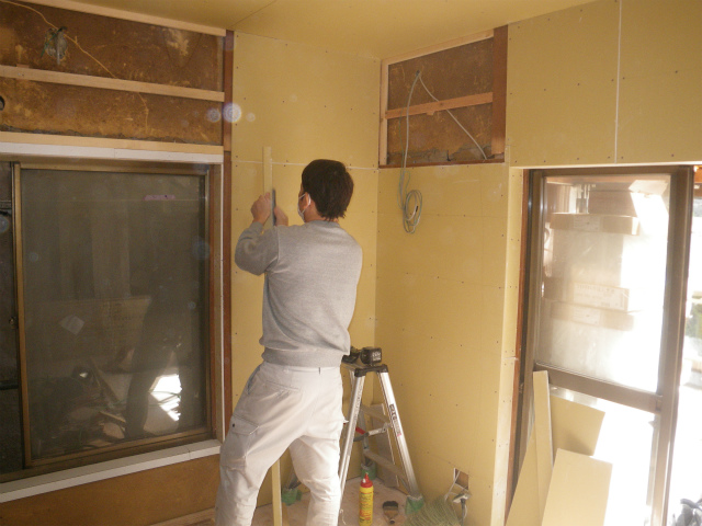次に、天井・壁の下地にプラスターボードやべニアを貼って、クロスの下地を作ります。
