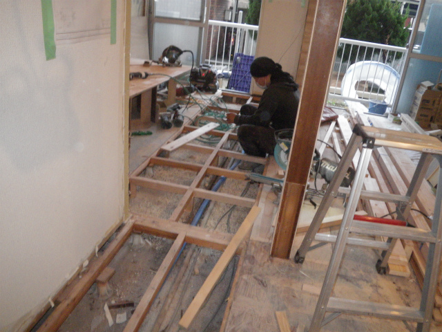 このように床下地の根太を組みなおして、フローリングを張る前の下地をきちんと作ります。